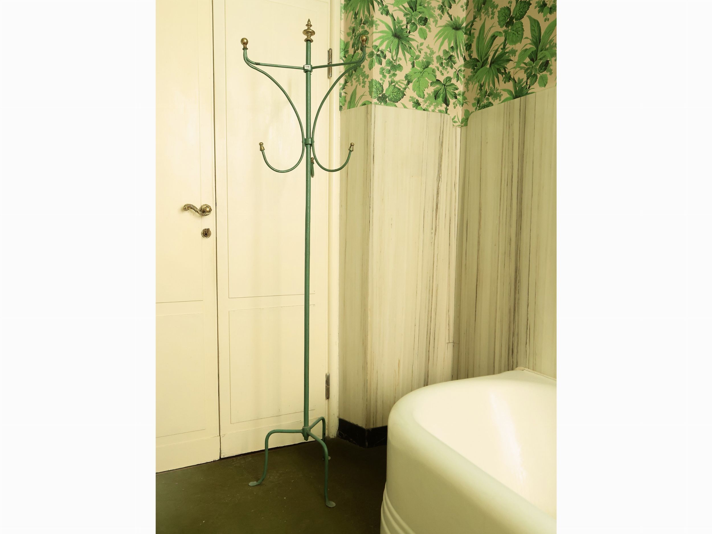 Attaccapanni a stelo in ferro battuto tinto verde acqua