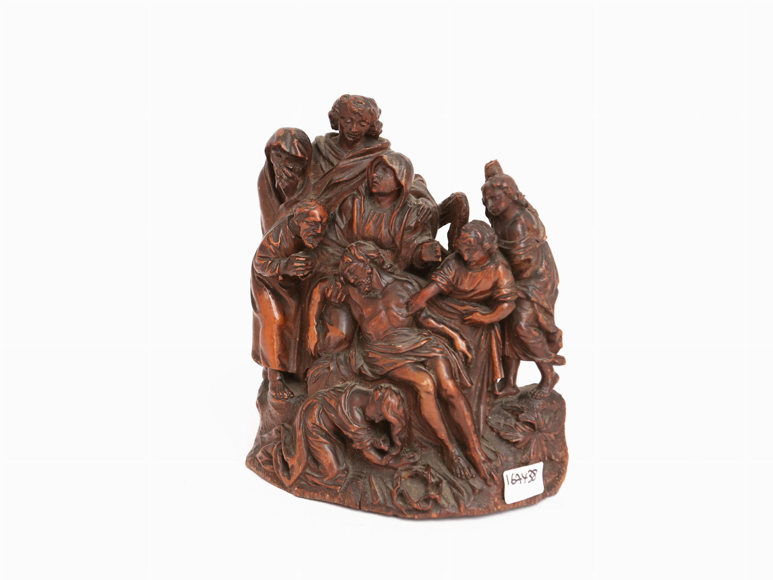 con la Vergine, San Giovanni Evangelista, Pie donne, angeli e Maria Maddalena, gruppo scultoreo in bosso realizzato ad altorilievo, con grande probabilità fungeva da base per una croce, alcune mancanze