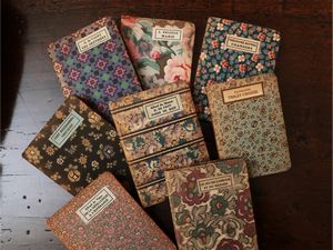 cm 9,5x7 (8) Primi del '900 sette piccoli volumi, piacevolmente rivestiti in tessuti con motivi floreali (1. Alfred [..]