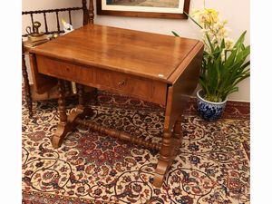 h cm 102x57x46 XIX/XX secolo schienale sagomato con cartella tripartita, seduta impagliata, gambe tornite riunite [..]