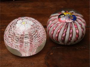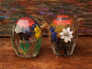 h cm 10 e cm 11 Murano, prima metà del XX secolo simili tra loro, con inclusione di fiori variopinti, lievissime [..]
