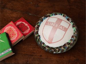 h cm 5,5x10 Murano, seconda metà del XX secolo con il simbolo dello scudo crociato, Libertas Democrazia Cristiana [..]