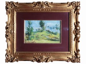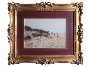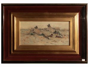cm 25x18 olio su cartoncino, firmato e datato 1883, in bella cornice in legno ebanizzato con dettagli in metallo, [..]