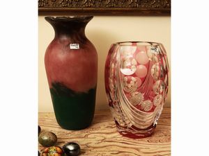 h cm 24 e cm 30 (2) Francia, inizio del XX secolo abbinato ad uno in cristallo doppio di Boemia