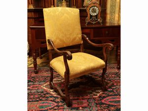 h cm 110x65x65 realizzati in stile seicentesco, braccioli a giorno desinenti a voluta, imbottiti e rivestiti in [..]