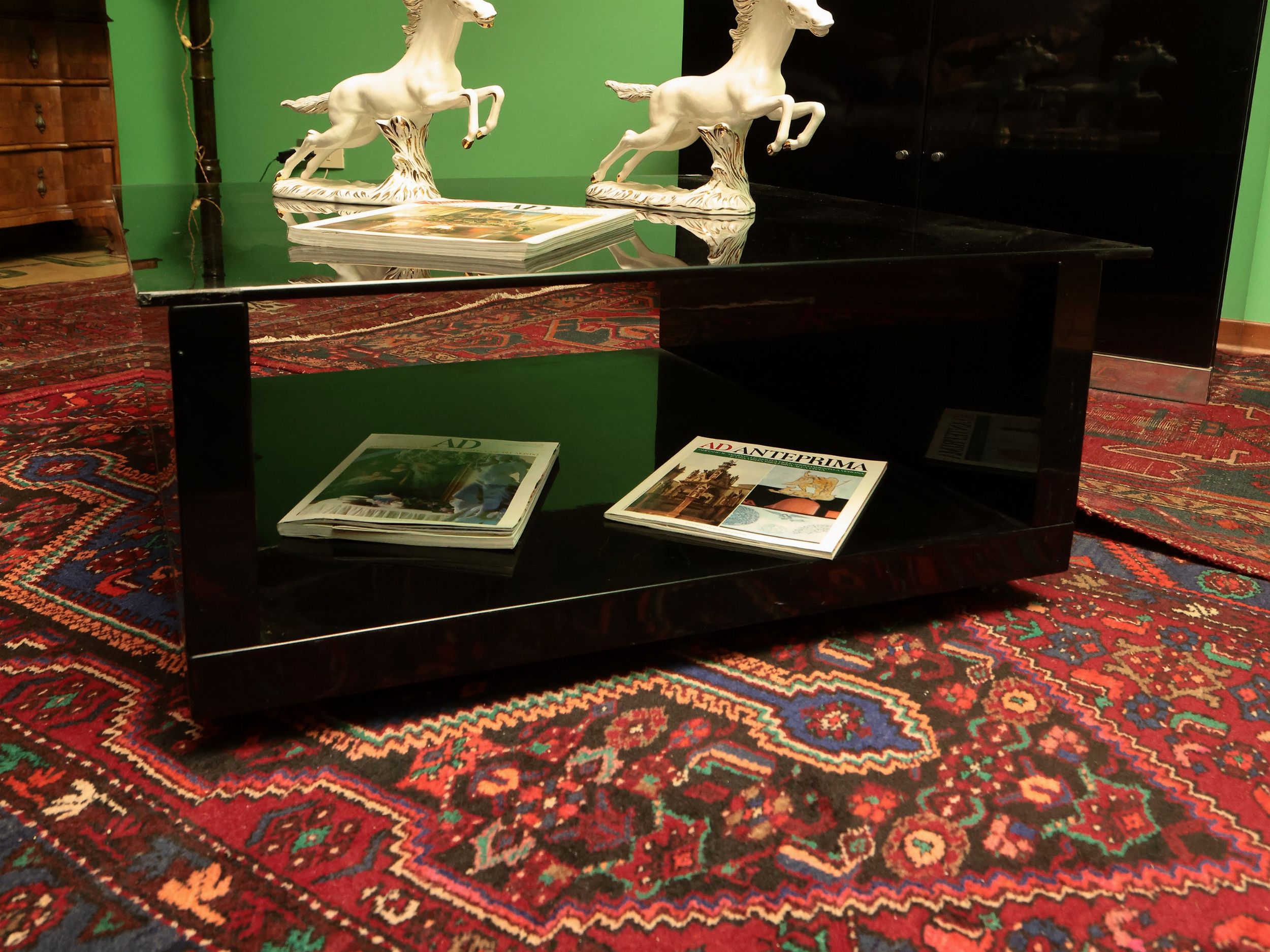 Anni Ottanta realizzato in legno laccato nero con piano in vetro