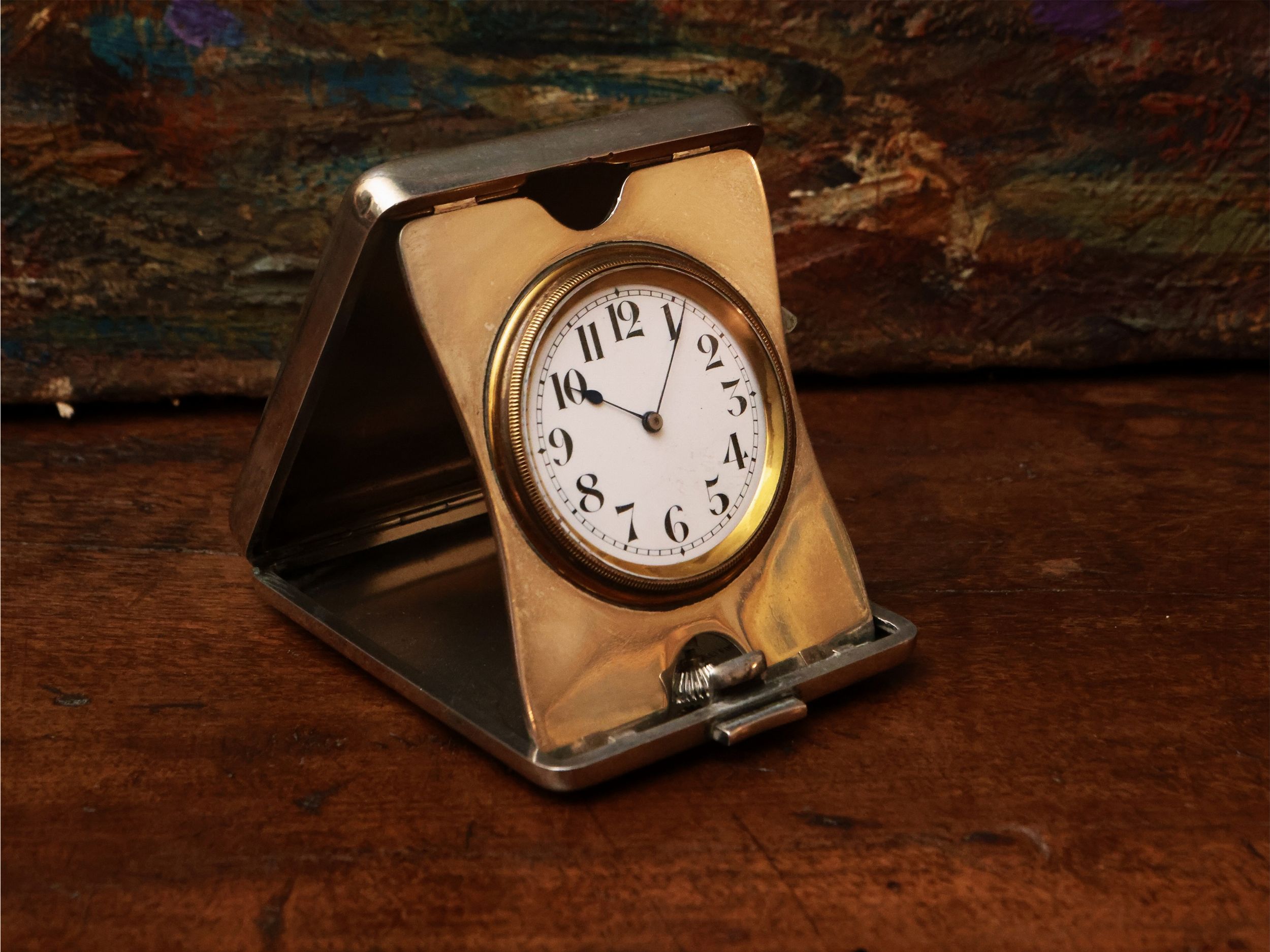 Orologio da tavolo da viaggio in argento 925/1000, Ugo Frilli