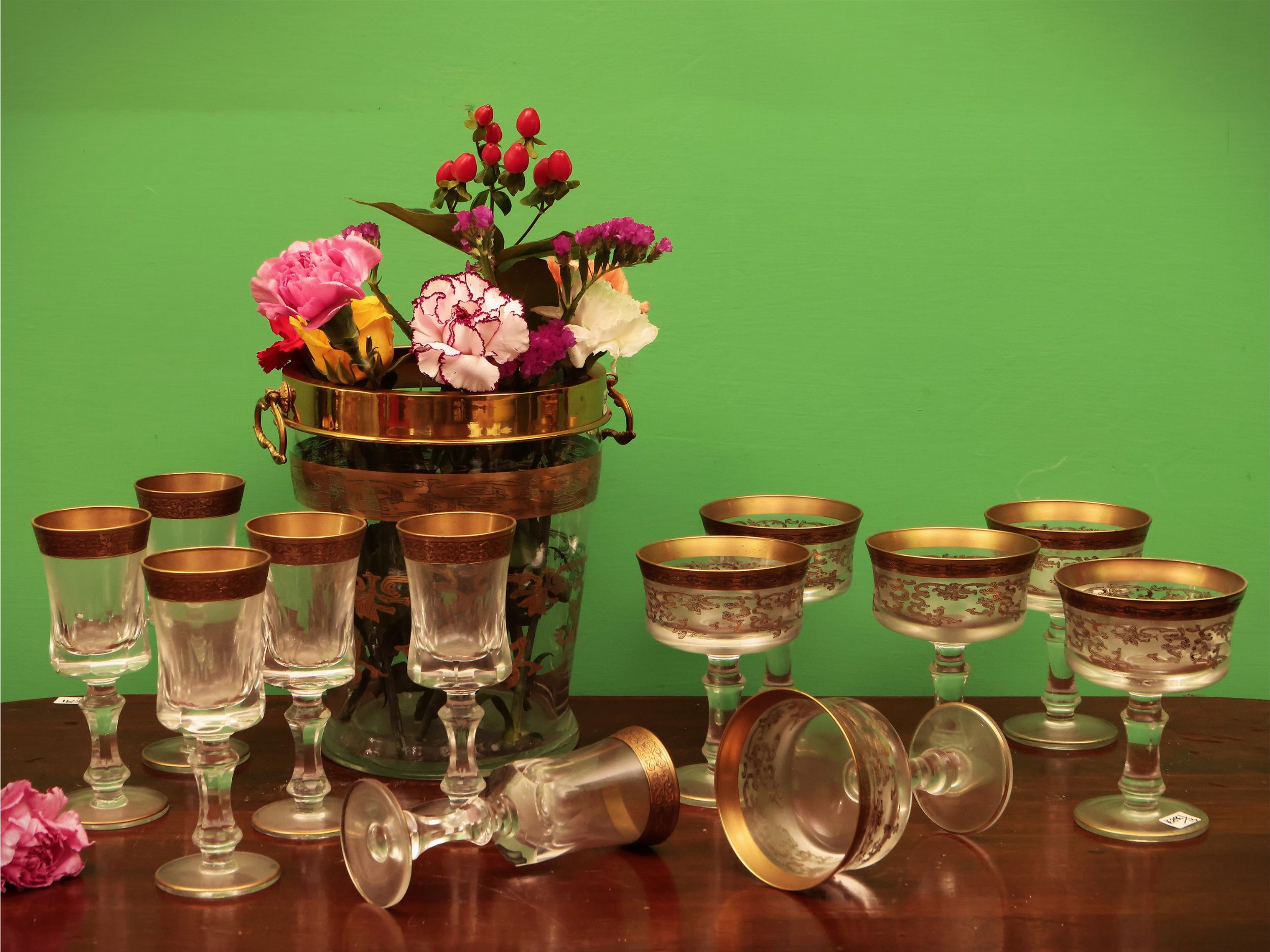 Set da aperitivo in vetro lumeggiato in oro