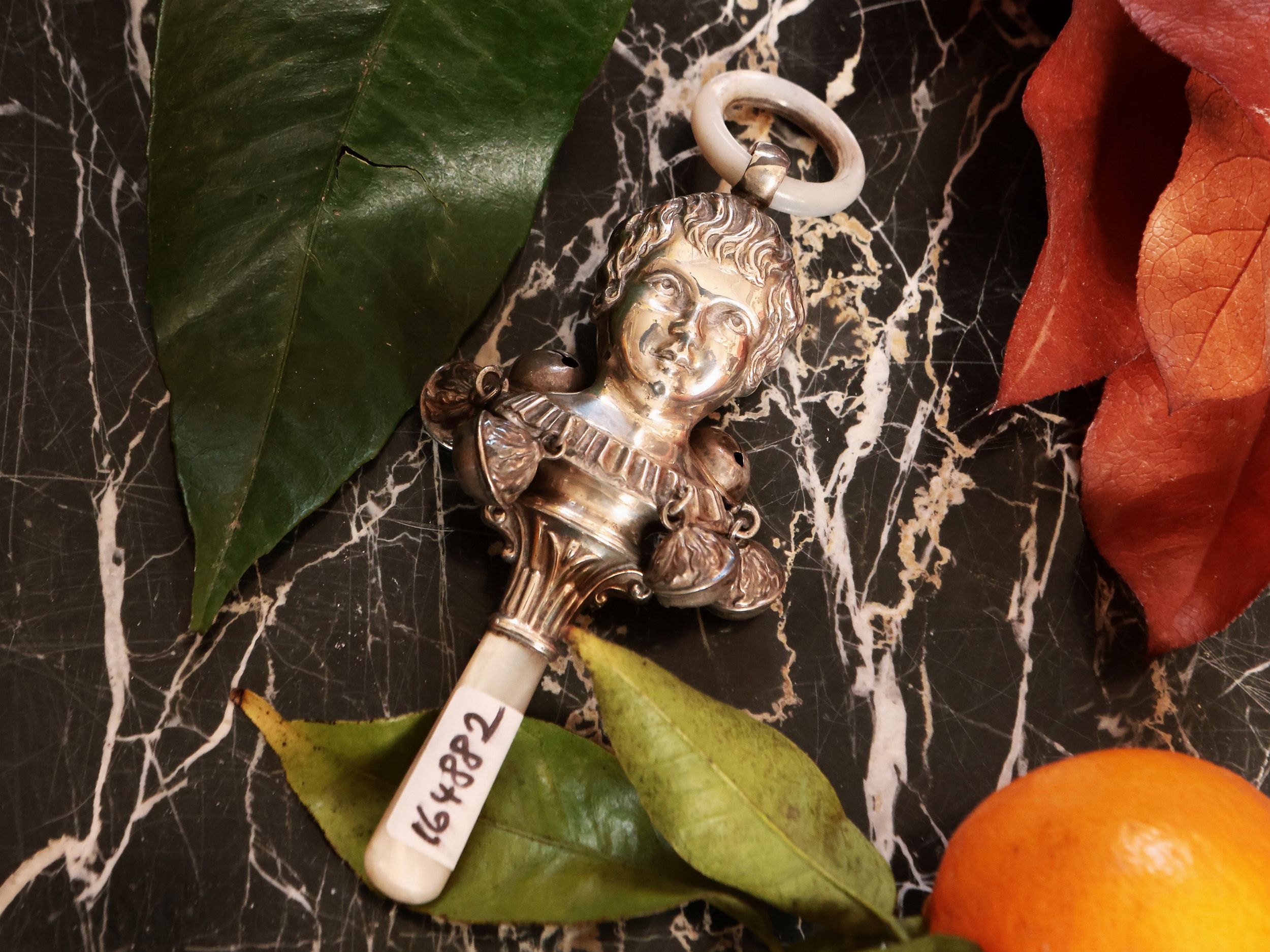 Birmingham, sormontato da testa di putto bifronte tra sei bubboli, presa ed anello in madreperla