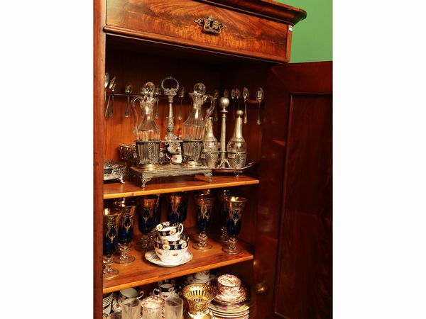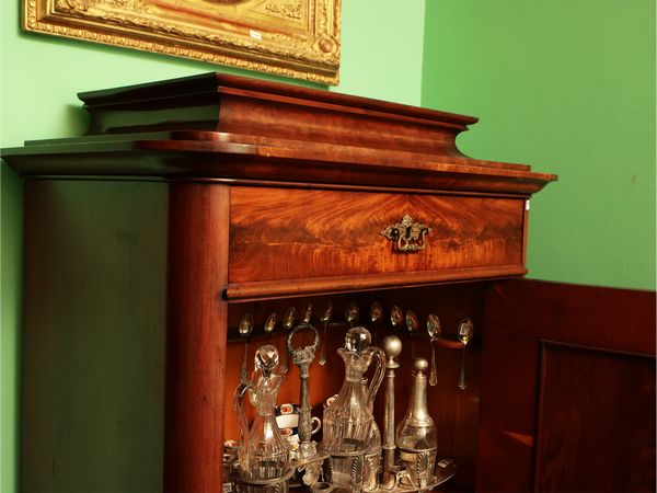 Stipo Biedermeier a colonna impiallacciato in mogano e piuma di mogano