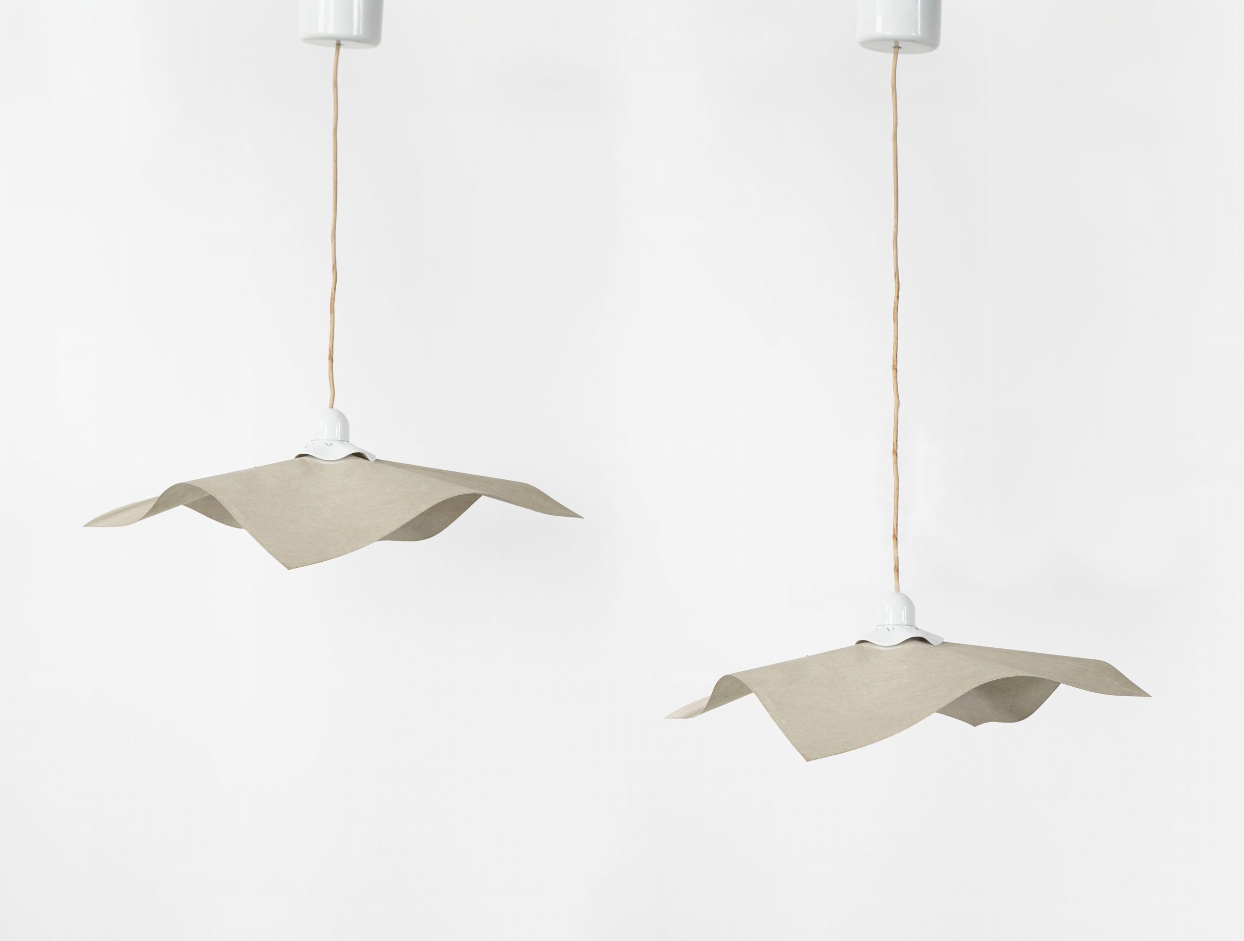 1974 coppia di sospensioni metallo verniciato e carta. Produzione Artemide Difetti