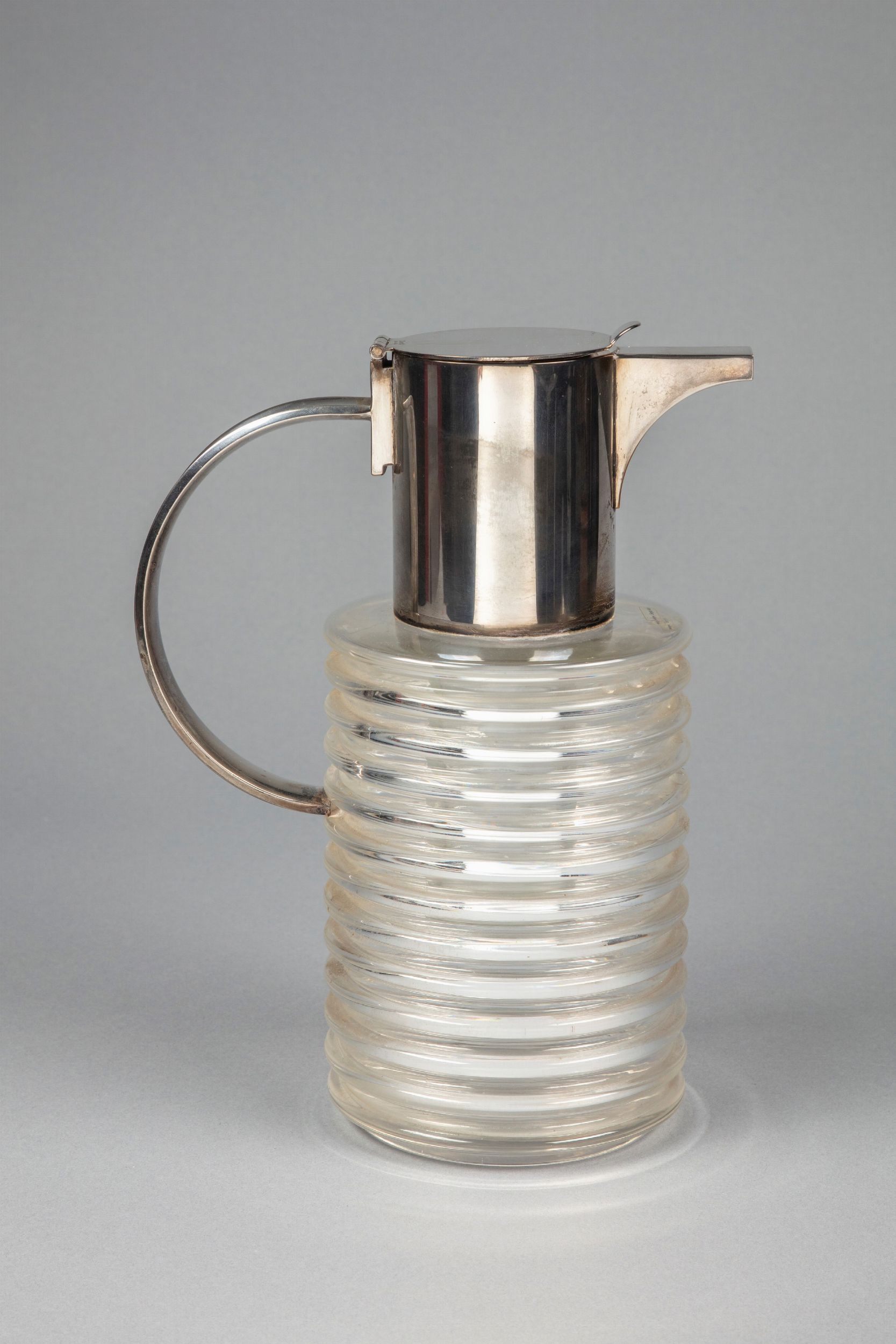 1960 ca. decoro a onde, in vetro e metallo argentato Produzione Arnolfo di Cambio marchio incusso nel metallo etichetta originale