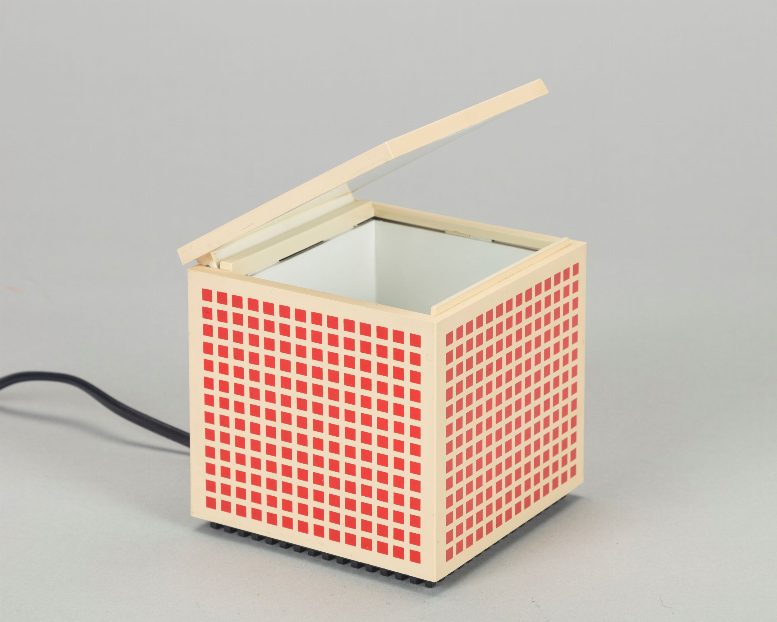1970 ca. lampada da tavolo, materiale plastico bianco e rosso Produzione Cini&Nils