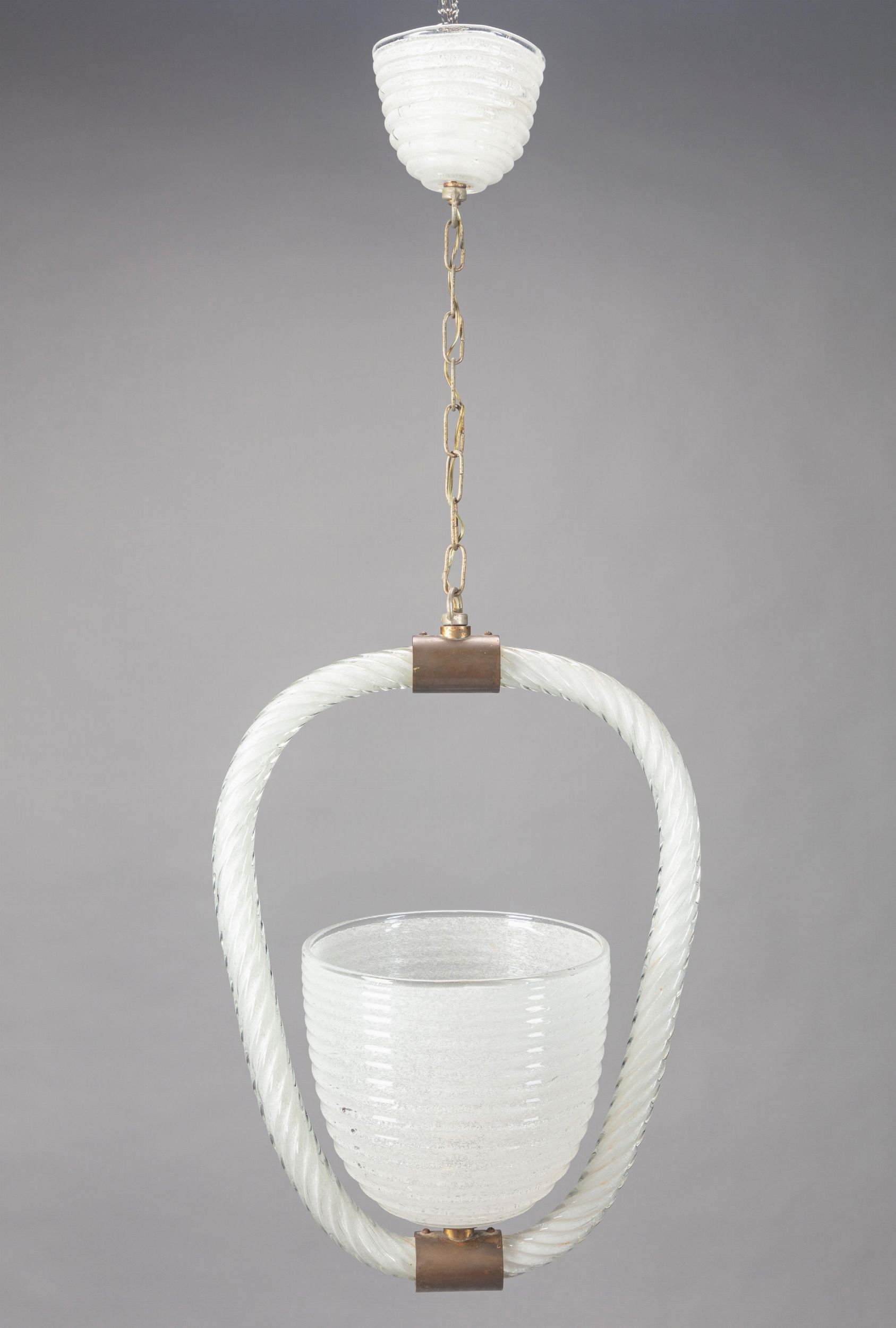 1930 ca. sturttura in ottone, diffusore e anse in vetro pulegoso Produzione Barovier e Toso