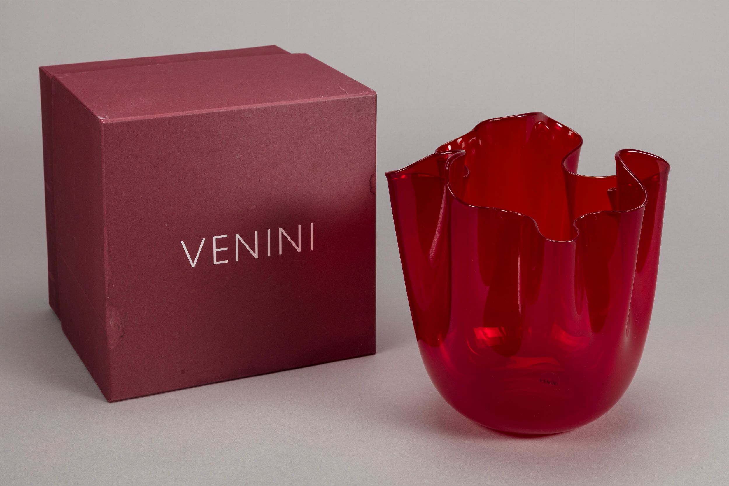 2003 in vetro soffiato e colorato di rosso Produzione Venini, Murano firma a punta sotto la base