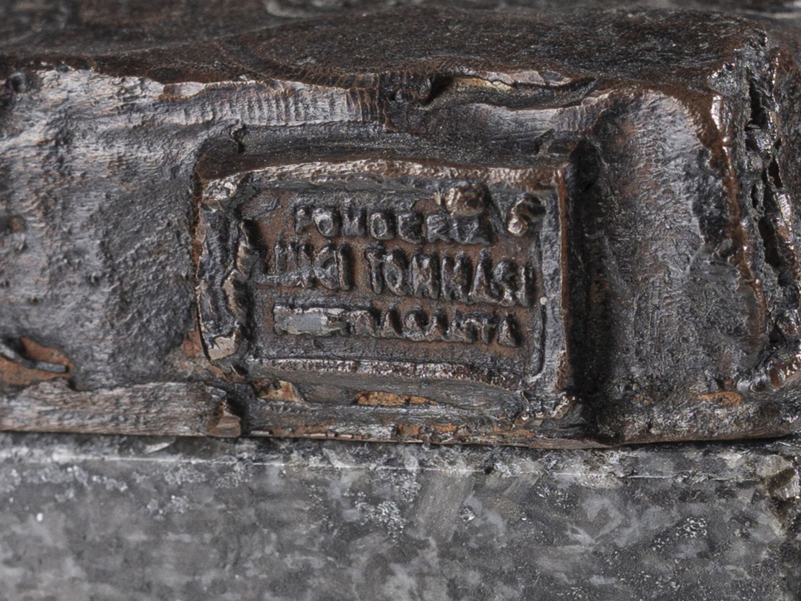 sigla, impronta dell'artista e punzone della Fonderia Luigi Tommasi, Pietrasanta. es. A/Pdimensioni senza base: 23x25x16,5PROVENIENZAOpera acquisita direttamente dall'artista dall'attuale proprietàCollezione privata, Pietrasanta