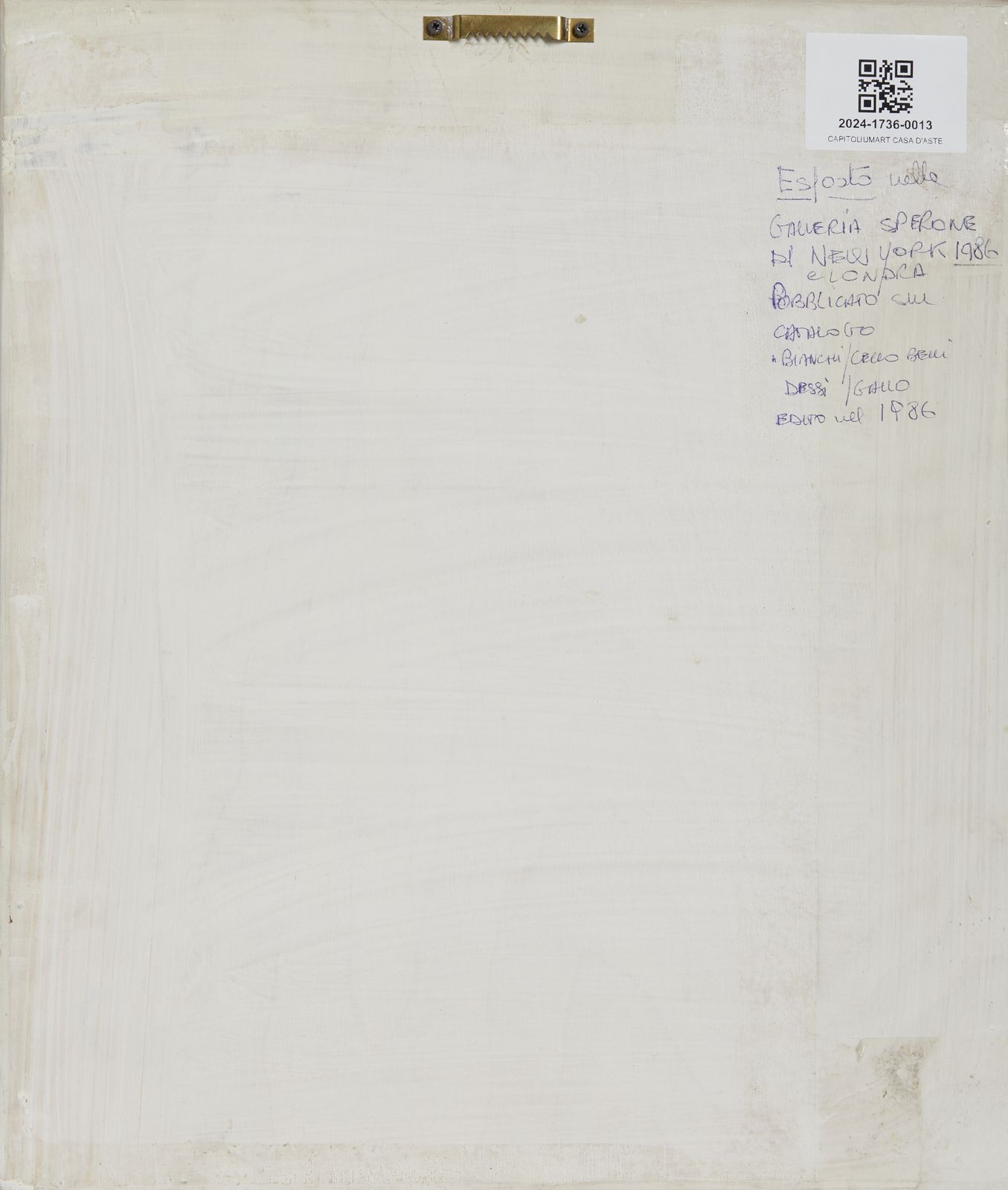 L'opera è accompagnata da autentica dell'artista su fotografiaESPOSIZIONIGalleria Sperone, NY, 1986Galleria Sperone, Londra,1986BIBLIOGRAFIACatalogo Bianchi Ceccobelli Dessì\Gallo 1986