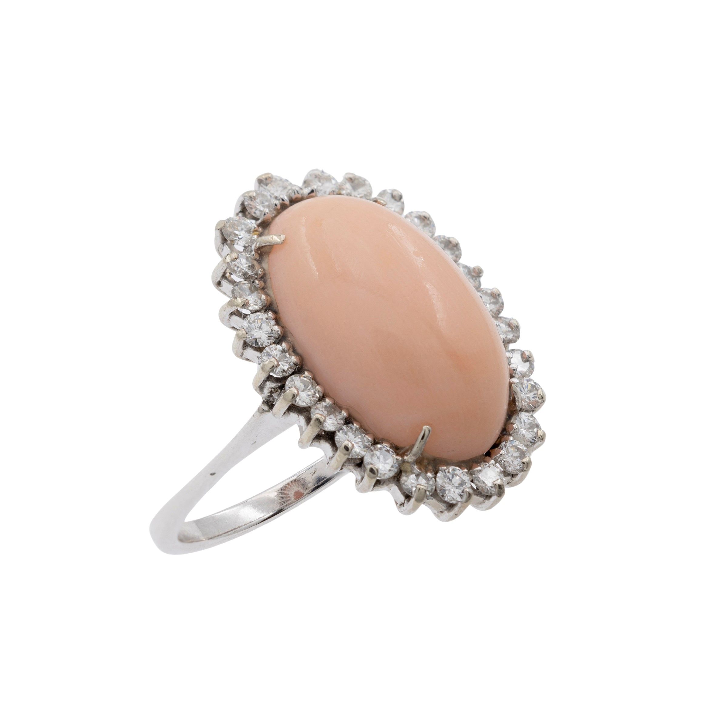 Anello in oro bianco 18kt corallo rosa e diamanti