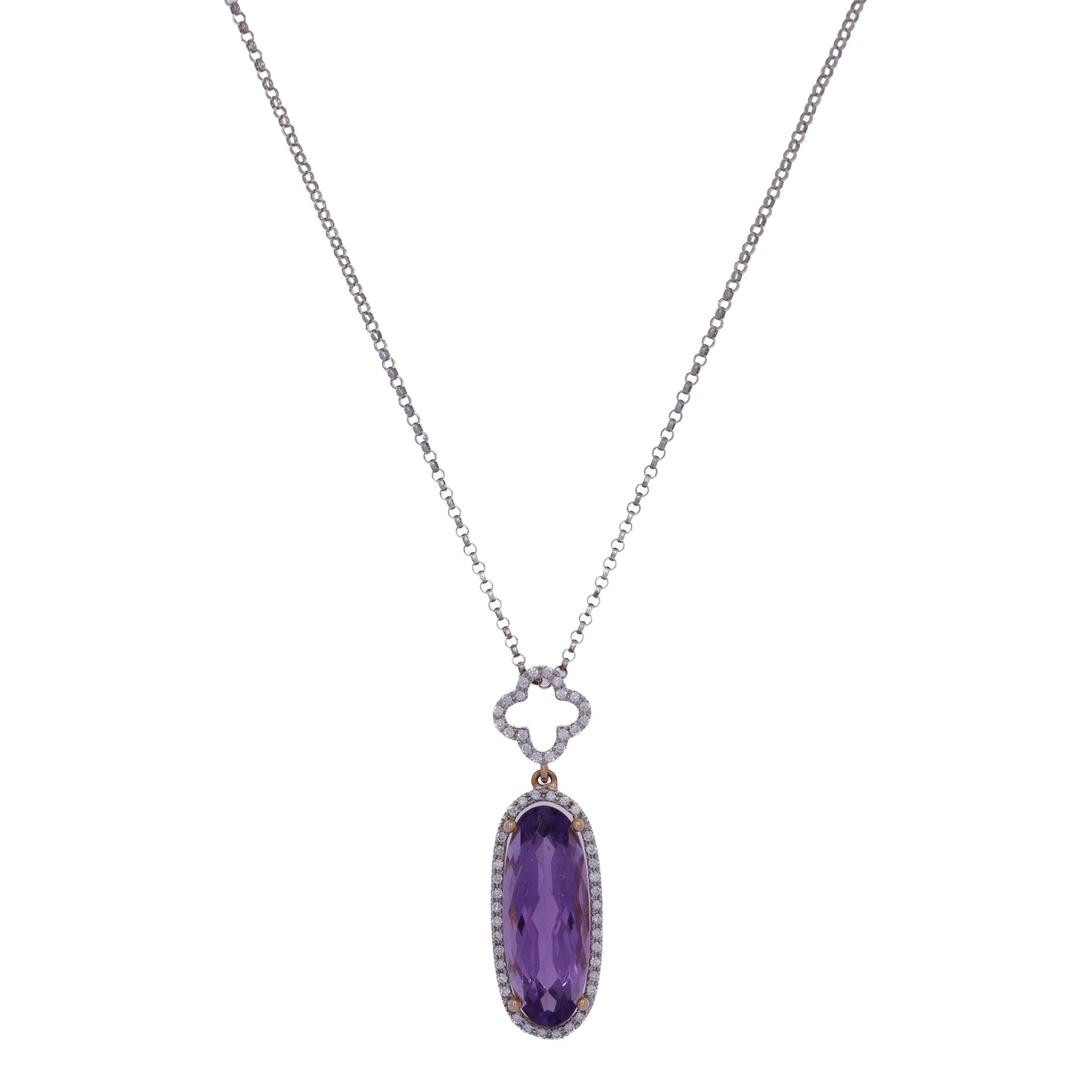Collana con pendente in oro rosso e bianco 18kt con ametista