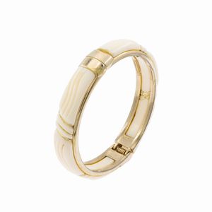 Bracciale bijou vintage a manetta in metallo dorato e resina bianca