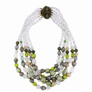 Collana bijou vintage in metallo dorato e pietre in resina colorata