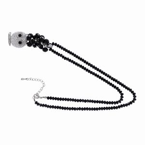 Collana bijou vintage in metallo argentato resina nera e strass