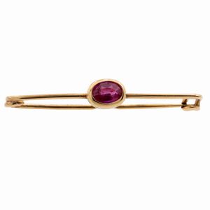 Spilla da balia per neonato in oro giallo 18kt con rubino ovale