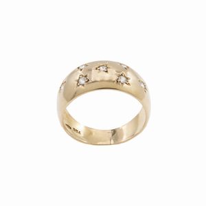 Anello a fascia in oro giallo 18kt e rose di diamante