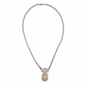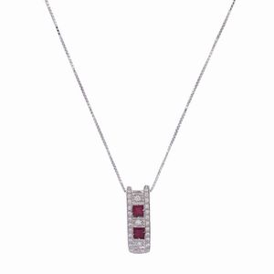 Collana con pendente in oro bianco 18kt diamanti e rubini