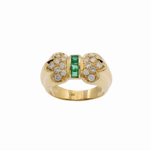 peso 8 gr. smeraldi taglio carré ct 0,30 circa, diamanti taglio brillante ct 0,50 circa, misura 14