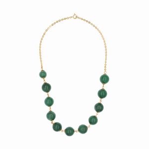 Collana in oro giallo 18kt e sfere di giada nefrite a gradazione