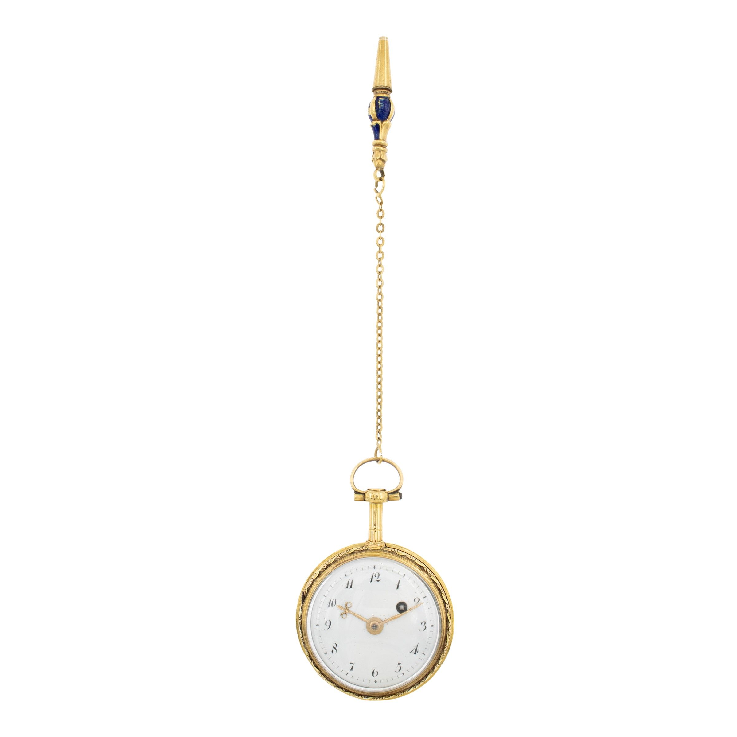 primi '900 cassa tonda in oro giallo 18kt e smalti policromi 34 mm., quadrante in porcellana con numeri arabi un bouquet floreale, movimento solo tempo carica a chiavetta e scappamento a cilindro, da revisionare