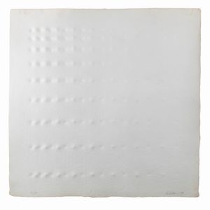 34x34 cm. Castelmassa 1930 - Viterbo 2017 'Rilievo bianco', 1979, impressione a secco, es. 15/50, firmato e datato [..]