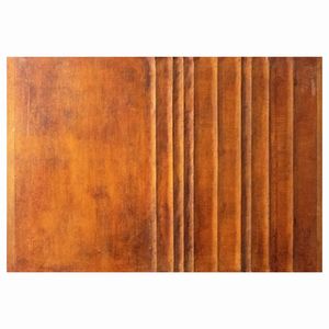 80x60 cm. Napoli 1929 - 2006 'Senza titolo', 2005, terre colorate e cuciture su tela di juta, firmato e datato [..]