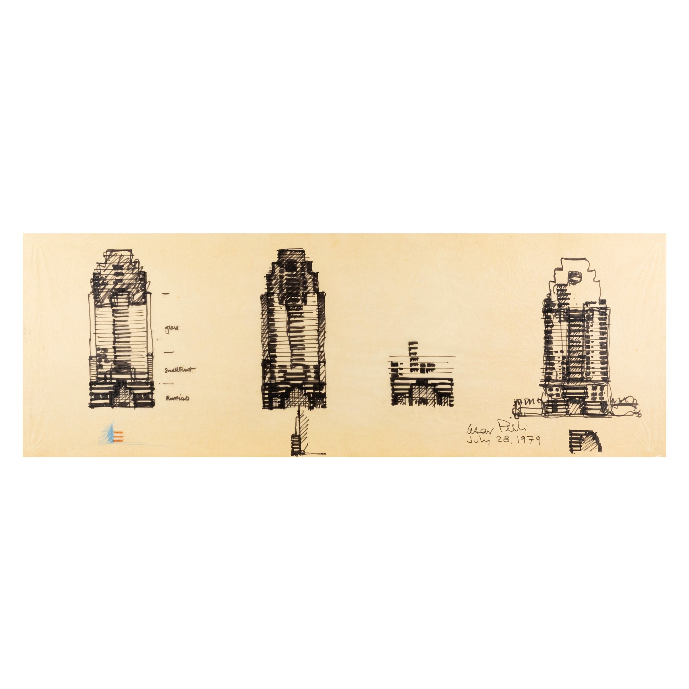 San Miguel de Tucumán 1926 - New Haven, Connecticut 2019 'Progetto per grattacielo', 1979, pennarello su carta, firmato e datato in basso a destra, entro cornice