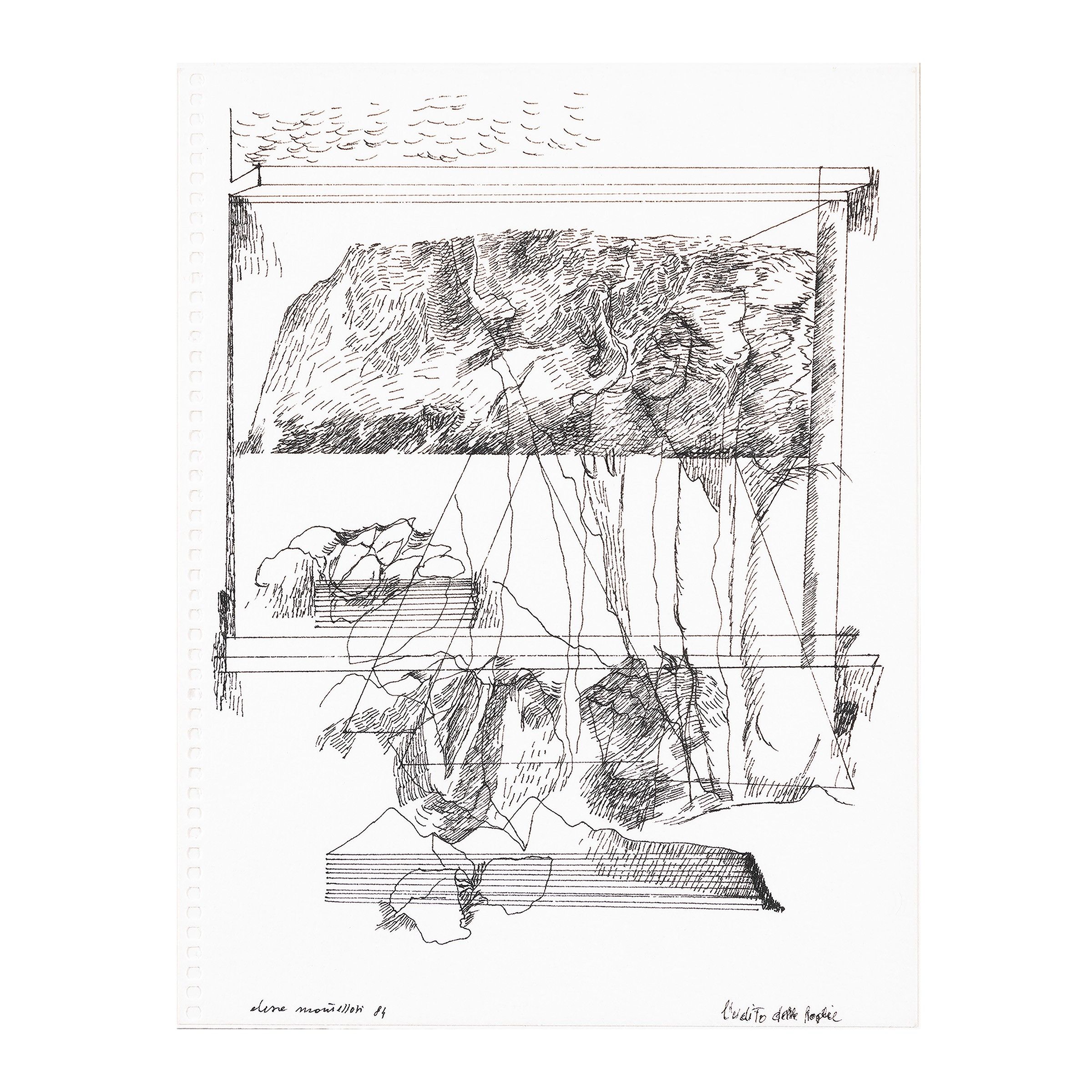 Genova 1931 'L'udito delle foglie', 1984, china su carta, firmata e datata in basso a sinistra, titolata in basso a destra, entro cornice