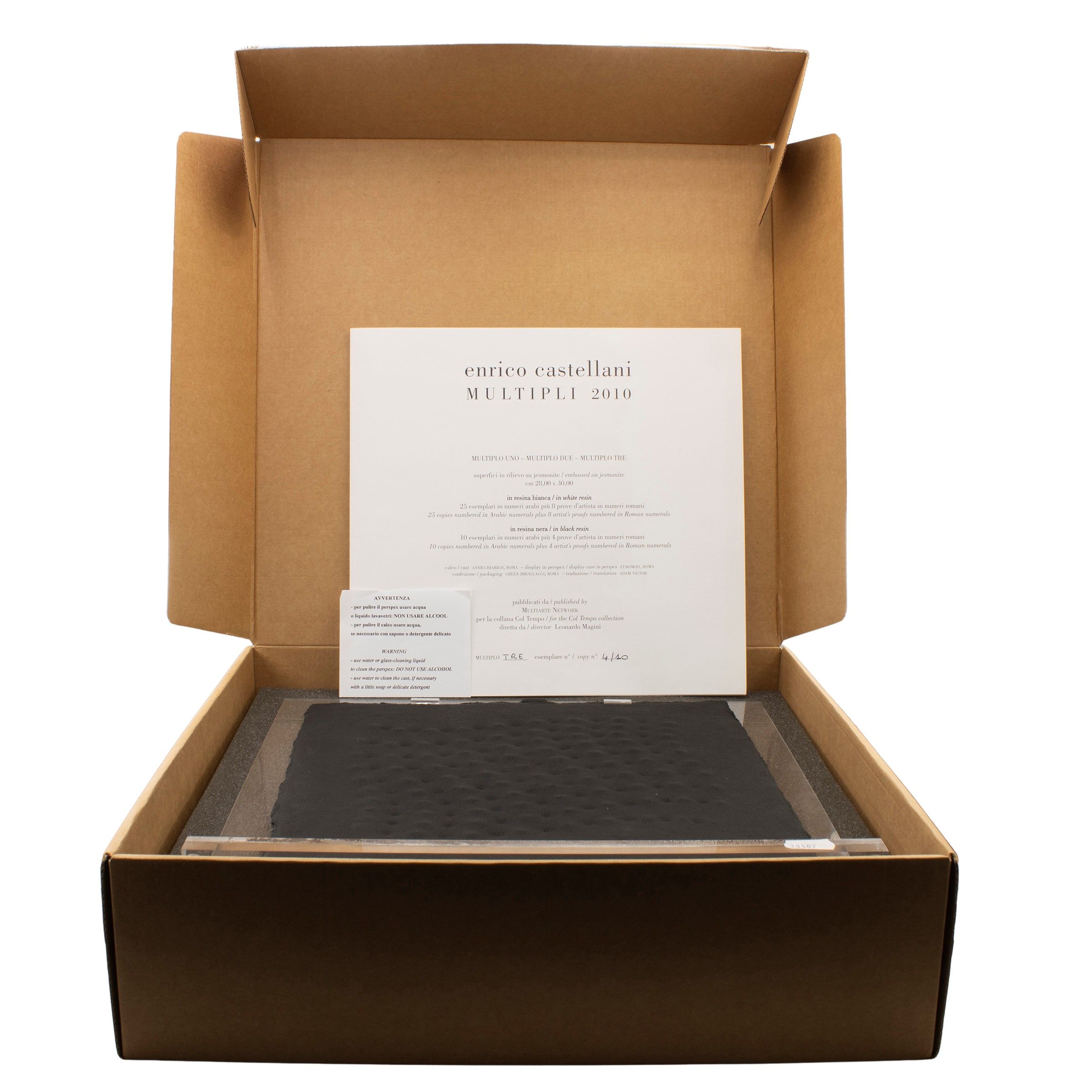 Castelmassa 1930 - Viterbo 2017 'Multiplo tre', 2010, superficie in rilievo su jesmonite in resina nera, es. 4/10, firmato e numerato sul retro, entro cornice in perspex, 34 x 36 x 10 cm.