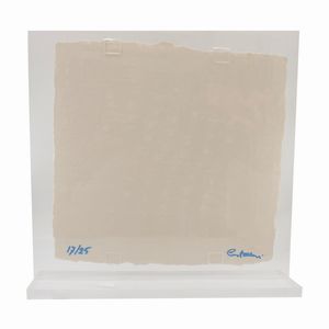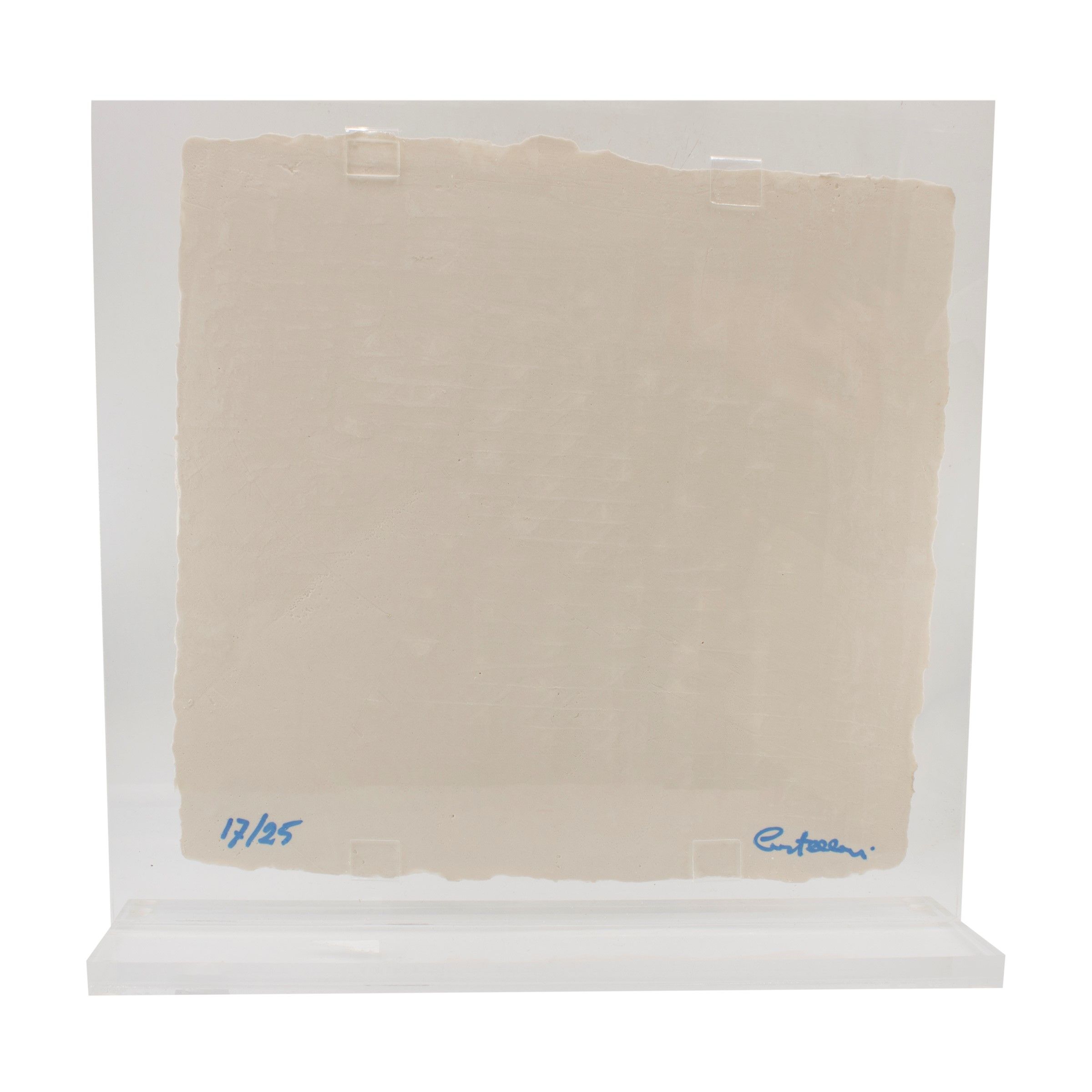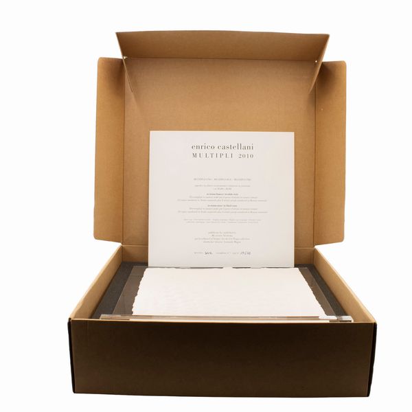 Castelmassa 1930 - Viterbo 2017 'Multiplo due', 2010, superficie in rilievo su jesmonite in resina bianca, es. 17/25, firmato e numerato sul retro, entro cornice in perspex, 34 x 36 x 10 cm.