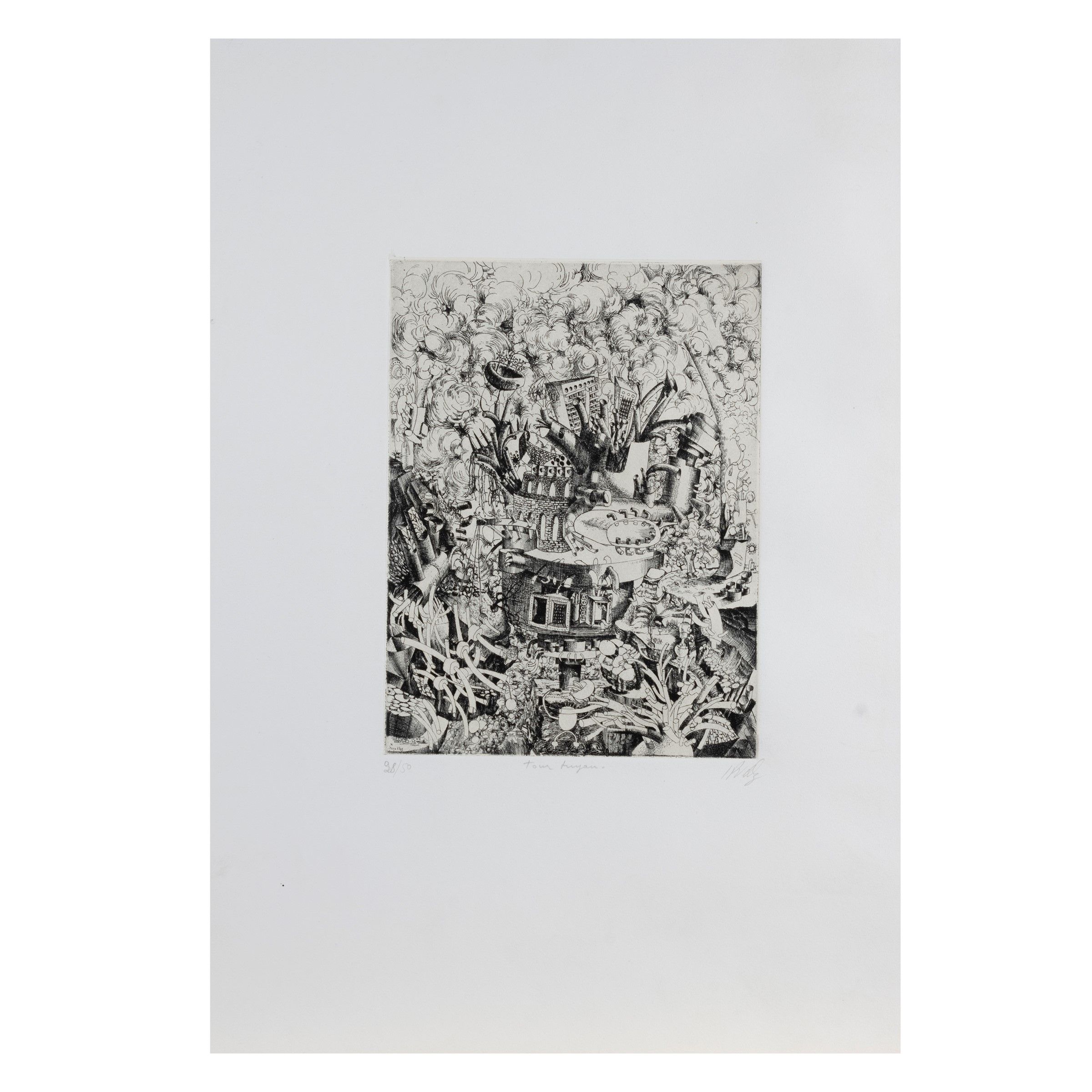 Audierne 1943 - Trevignano Romano 1990 'Tour Tuyau', acquaforte, es. 28/50, firmata in basso a destra, titolata in basso al centro