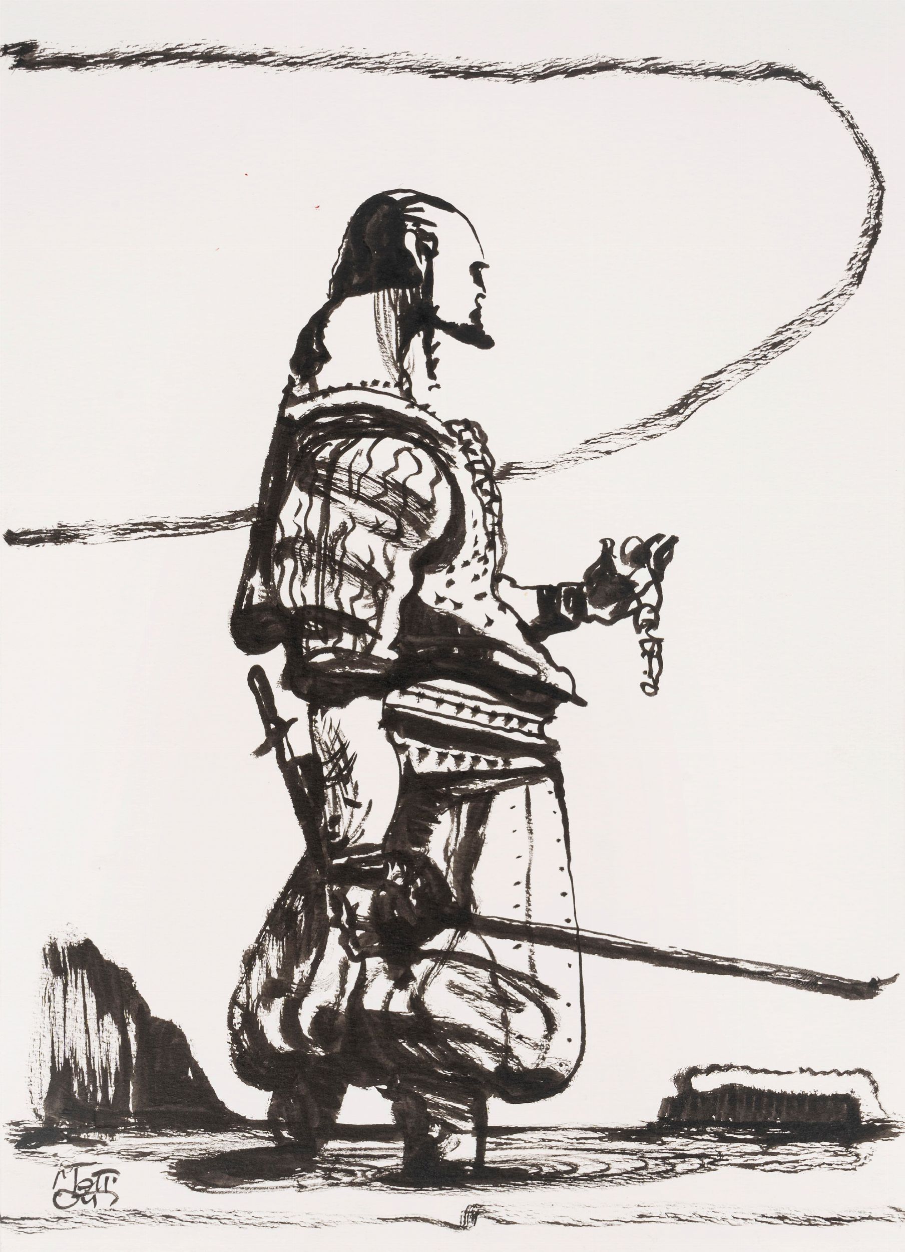 china su cartoncino, 24 x 33,5 cm 1992 Illustrazione originale realizzata da Mattotti durante la sua lavorazione al volume 'Caboto', edito per la prima volta dall’editore spagnolo Planeta nel 1992. In una atmosfera eterea, a tratti da sogno, Mattoti ci regala la storia del viaggio di Caboto verso le Molucche, destinazione che l’esploratore non ha mai raggiunto, il viaggio biografico diventa pretesto per una serie di domande sull’atto stesso del raccontare. Firmata.