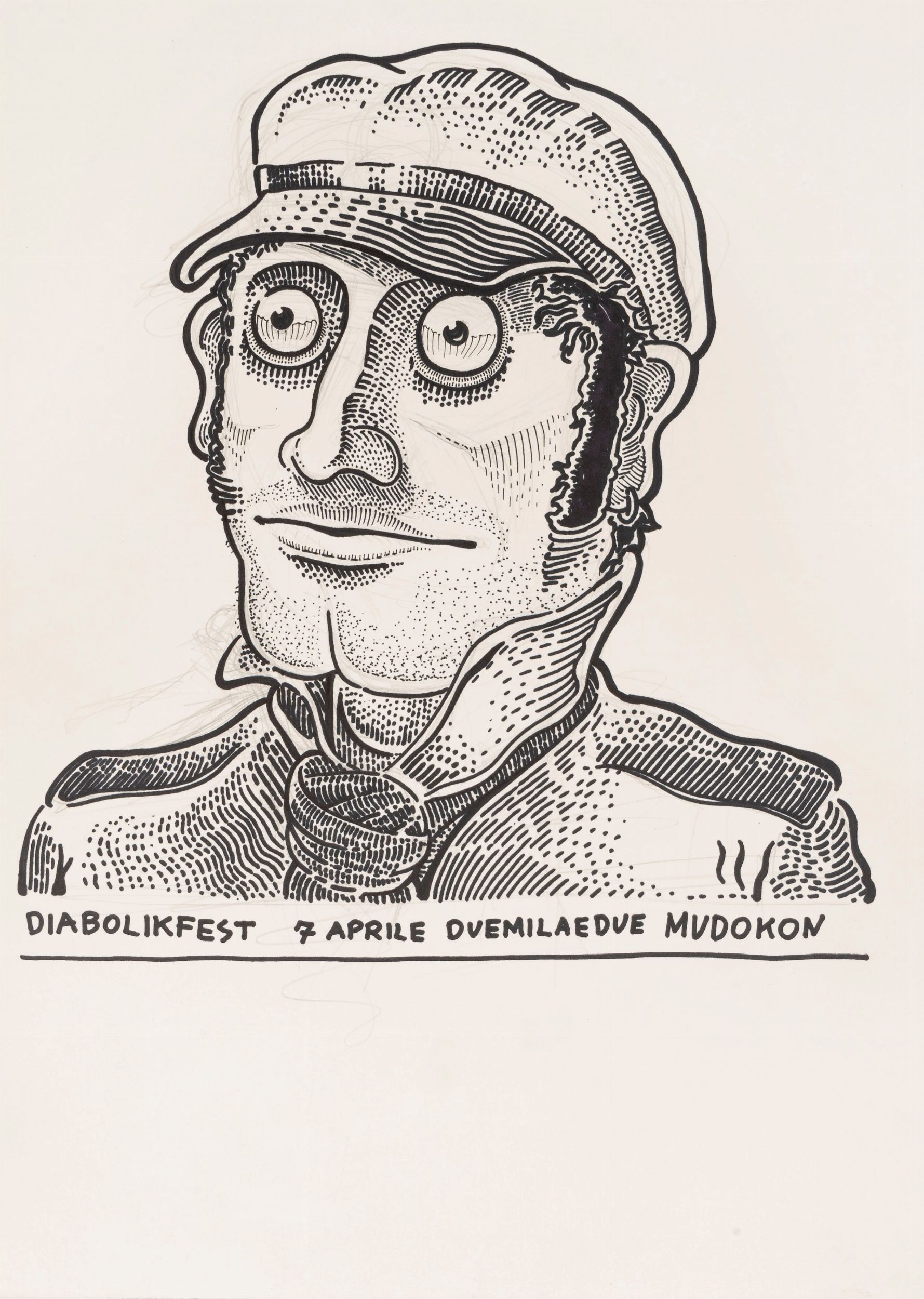 2002 Disegno originale realizzato da Mudokon come omaggio al Corto Maltese di Hugo Pratt. Firmato e datato.