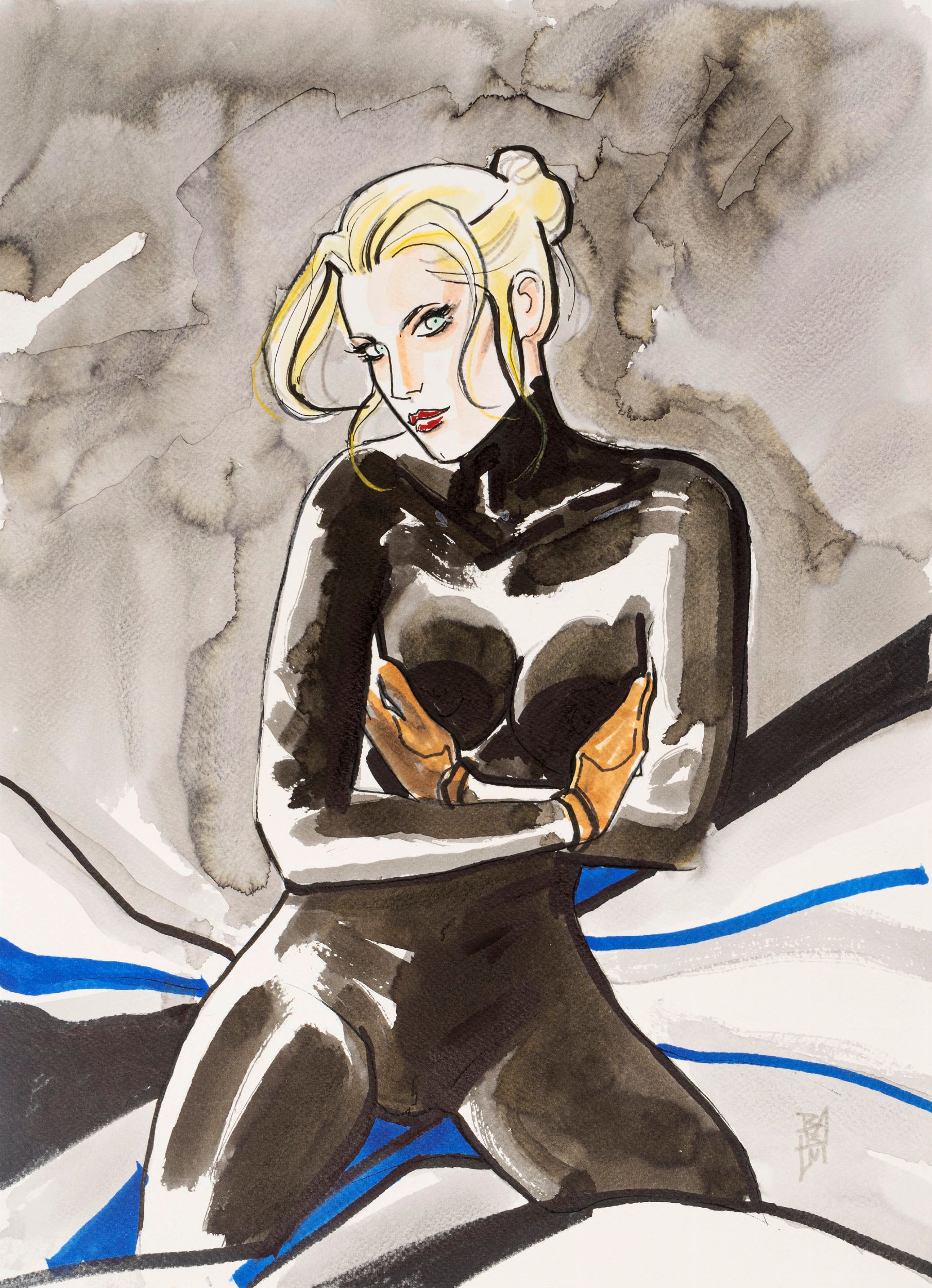 2013 Illustrazione originale realizzata da Babini come omaggio all'affascinante e letale compagna di Diabolik. Firmata al fronte e firmata e datata al retro.