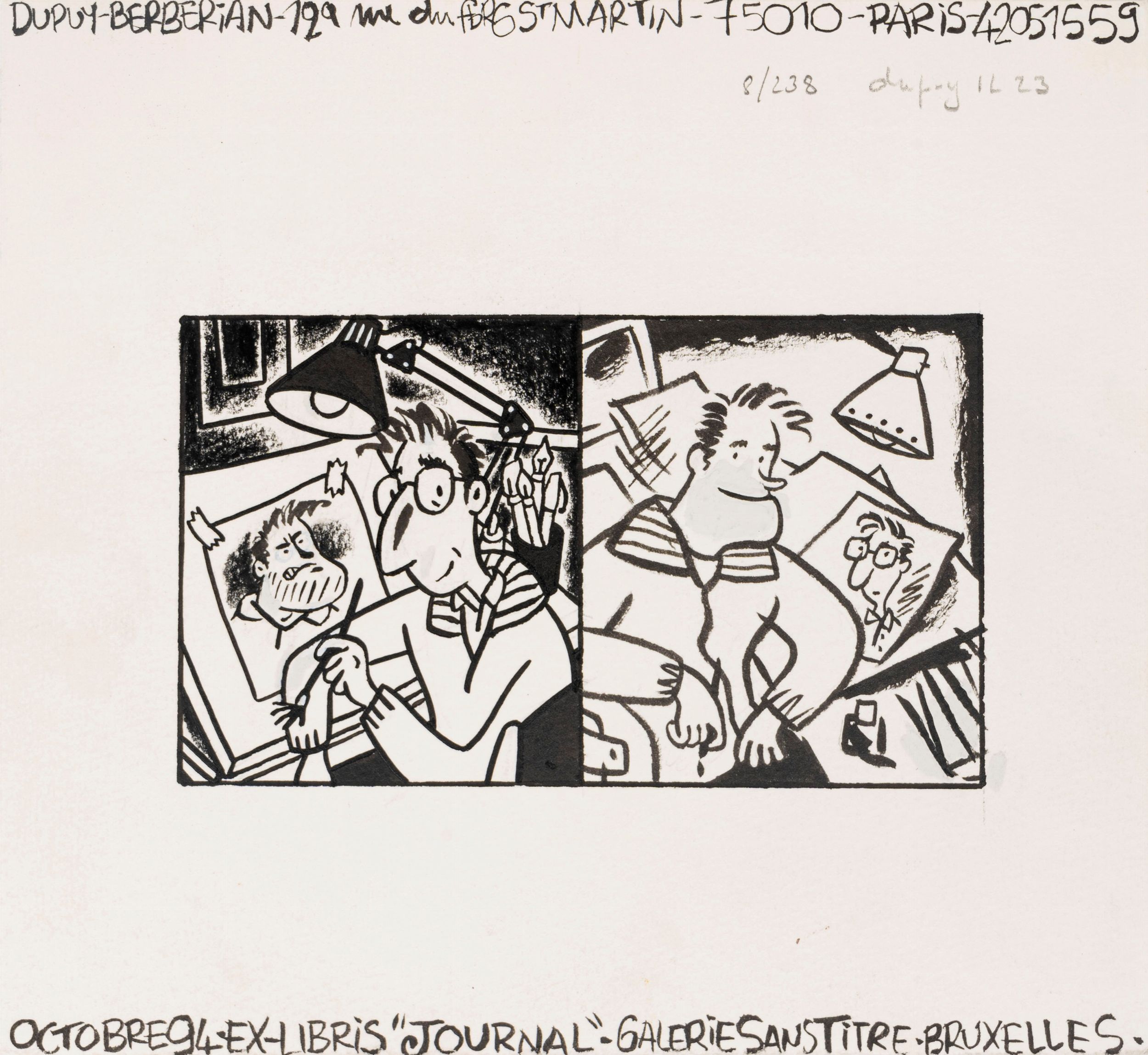 1994 Disegno originale realizzato dalla coppia di autori francesi Dupuy e Berberian, pubblicato come Ex-Libris in tiratura limitata dalla galleria Sans Titre di Parigi nel 1994.