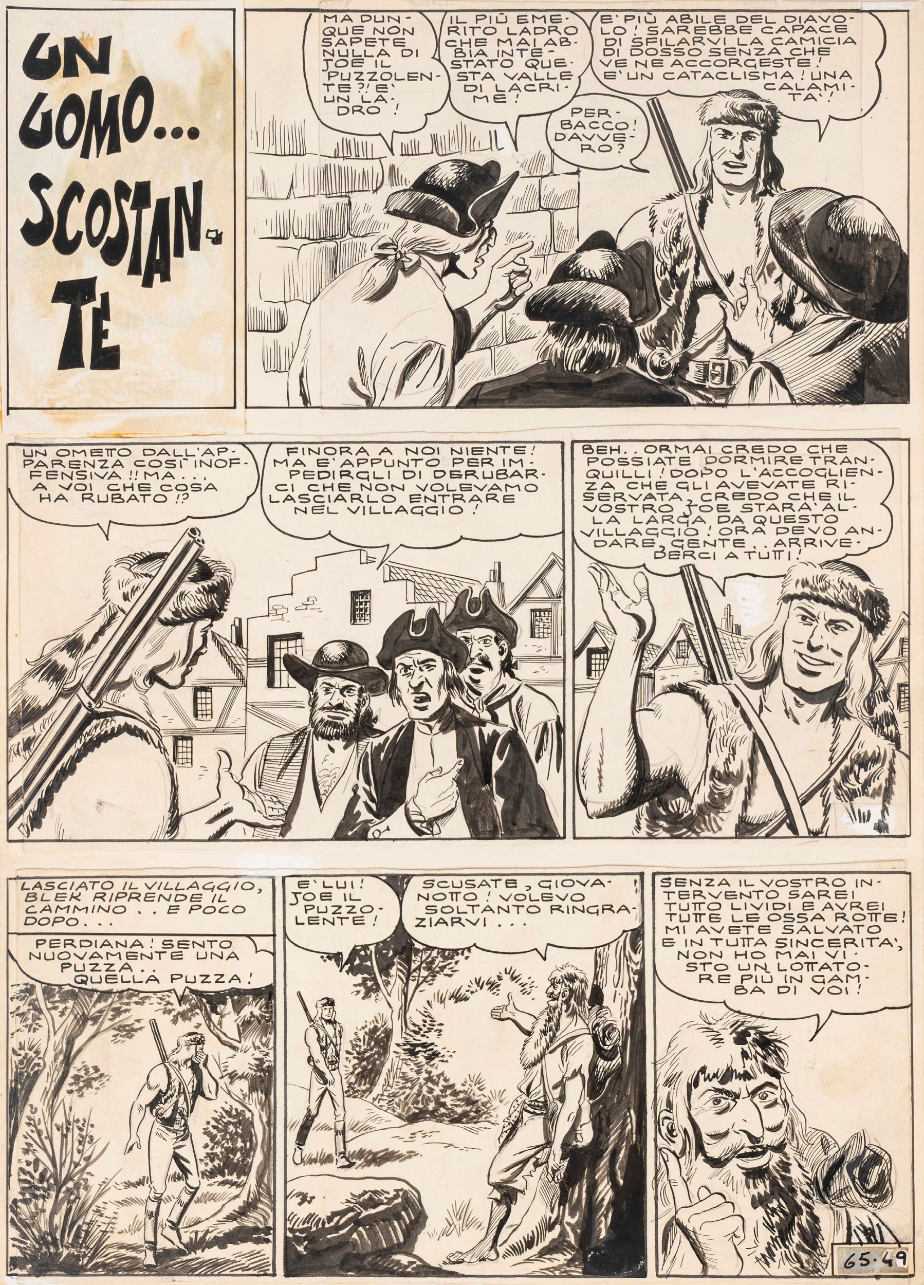 anni 60 Tavola originale realizzata dalla EsseGesse per un'avventura de Il grande Blek intitolata 'Un uomo...scostante', ristampata su Il grande Blek n. 65 dalla Dardo nel 1973.