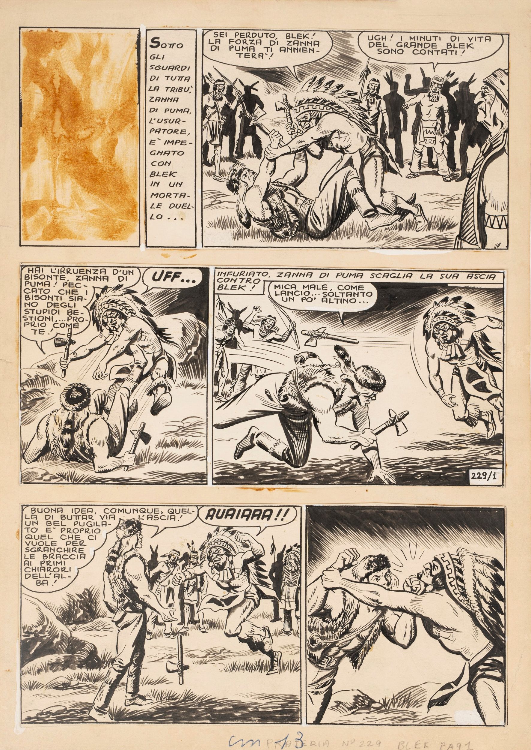 1957 Tavola originale realizzata dalla EsseGesse per un'avventura de Il grande Blek, edita nella Collana Prateria n. 229 nel celebre formato a strisce nel 1957.