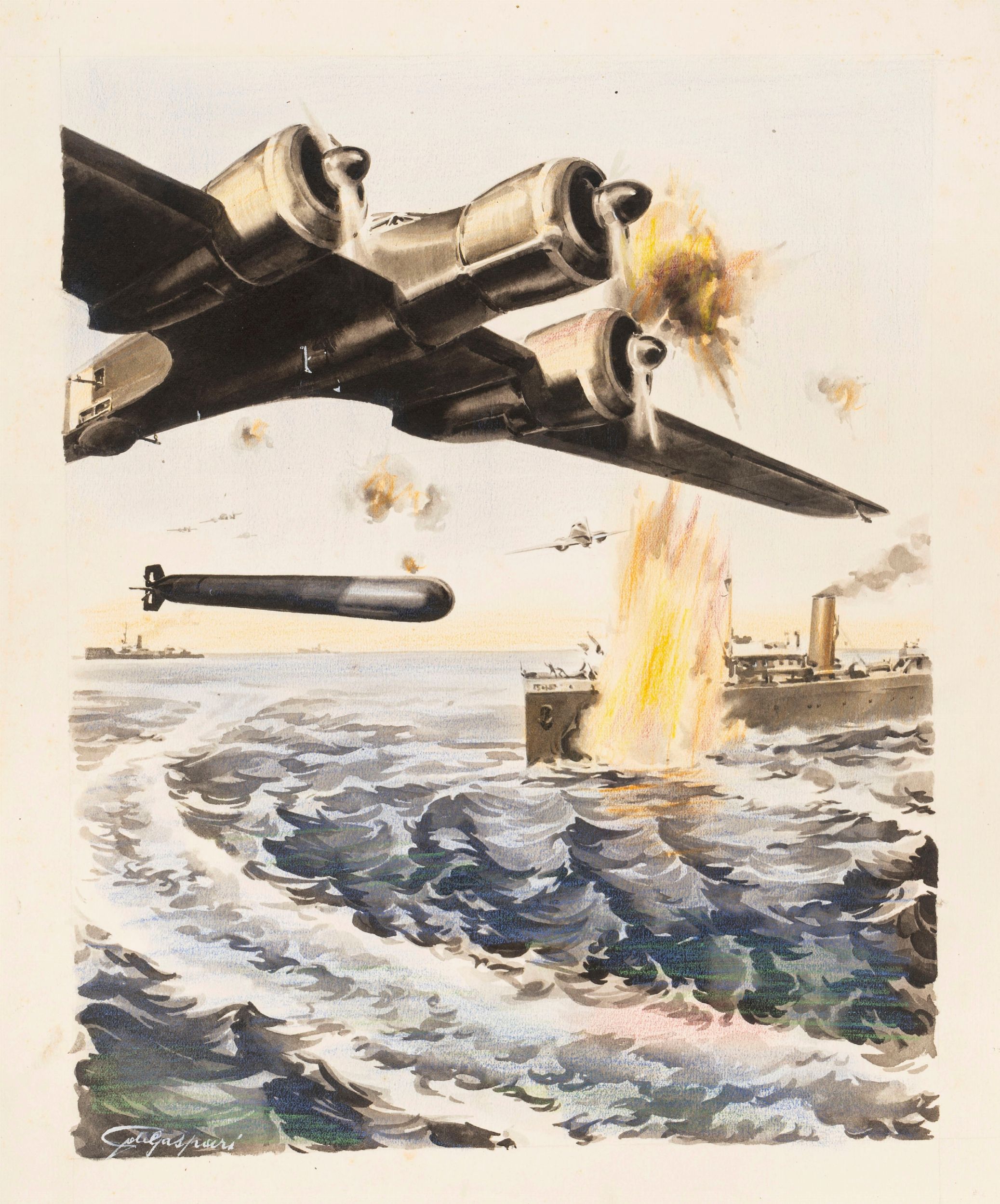 Giorgio De Gaspari : Incursione aerea  - Asta Maestri del Fumetto: Collezione Oliva - Associazione Nazionale - Case d'Asta italiane