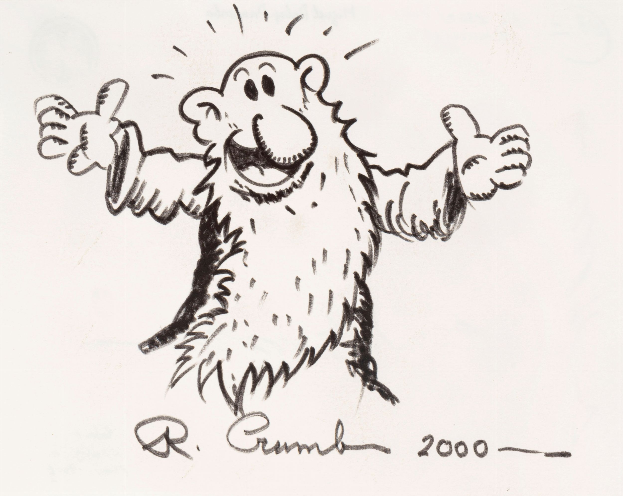 pennarello su carta, 17,5 x 14 cm 2000 Disegno originale realizzato da Crumb nel 2000 raffigurante il suo celebre Mr. Natural, personaggio diventato un'icona della controcultura underground degli anni '60. Al retro è presente il timbro di Miguel Palop Pancorbo, noto critico d'arte e collezionista spagnolo. Firmato e datato.