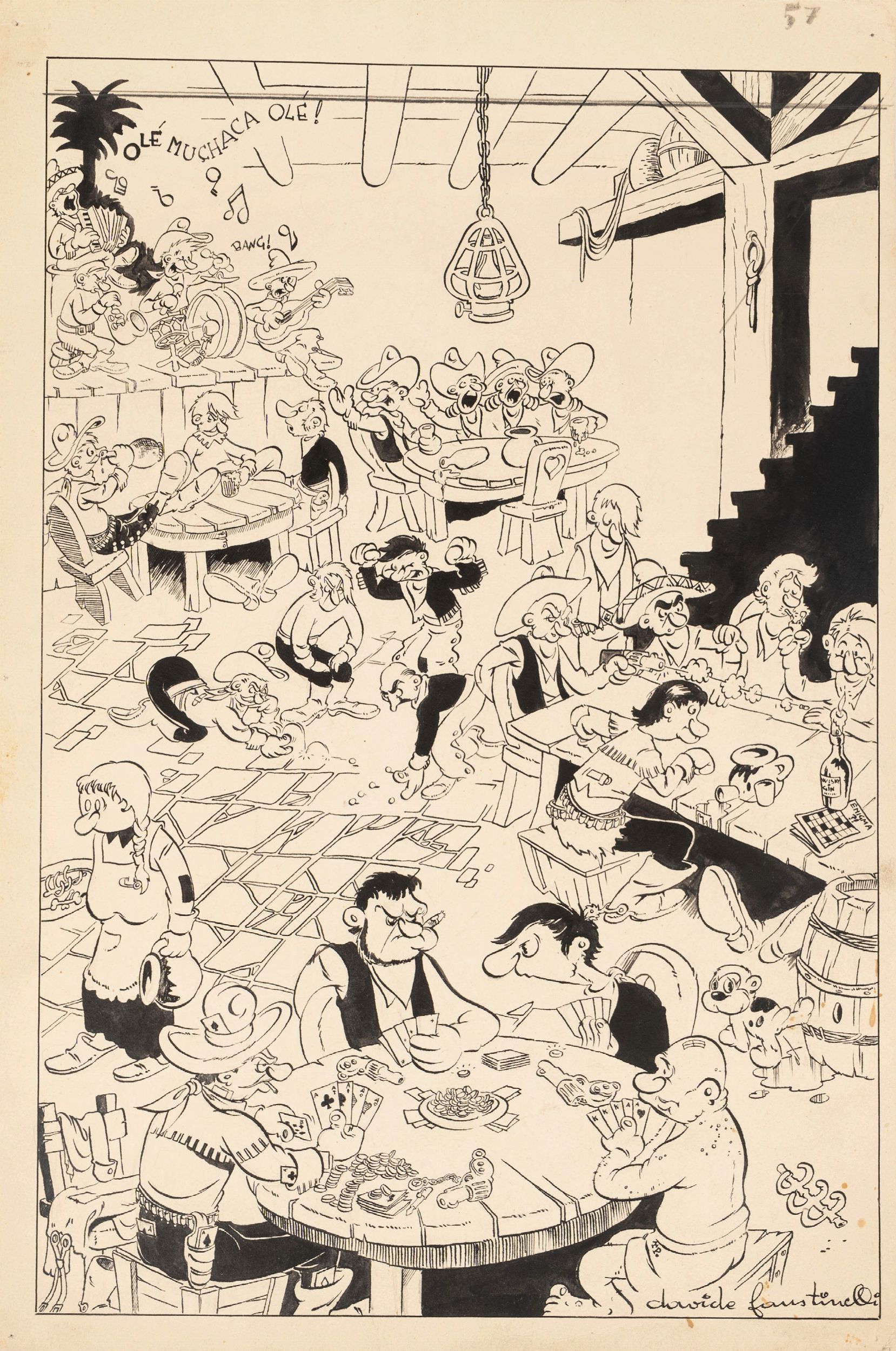 Mario Faustinelli : Saloon del vecchio west  - Asta Maestri del Fumetto: Collezione Oliva - Associazione Nazionale - Case d'Asta italiane