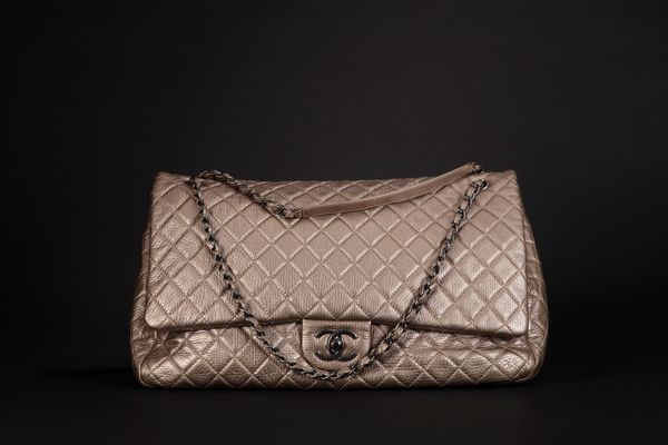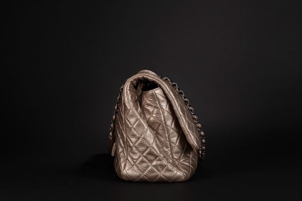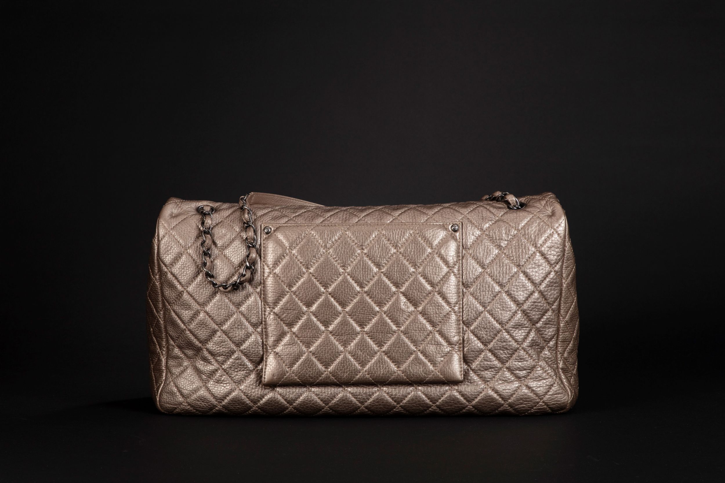 2016 in pelle matelassè color bronzo XXL, tracolla a catena in metallo brunito, cm 46, con sacchetto (con tasca per trolley sul retro)