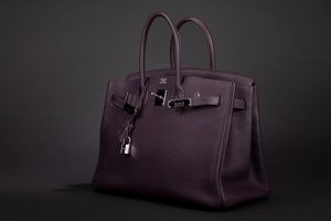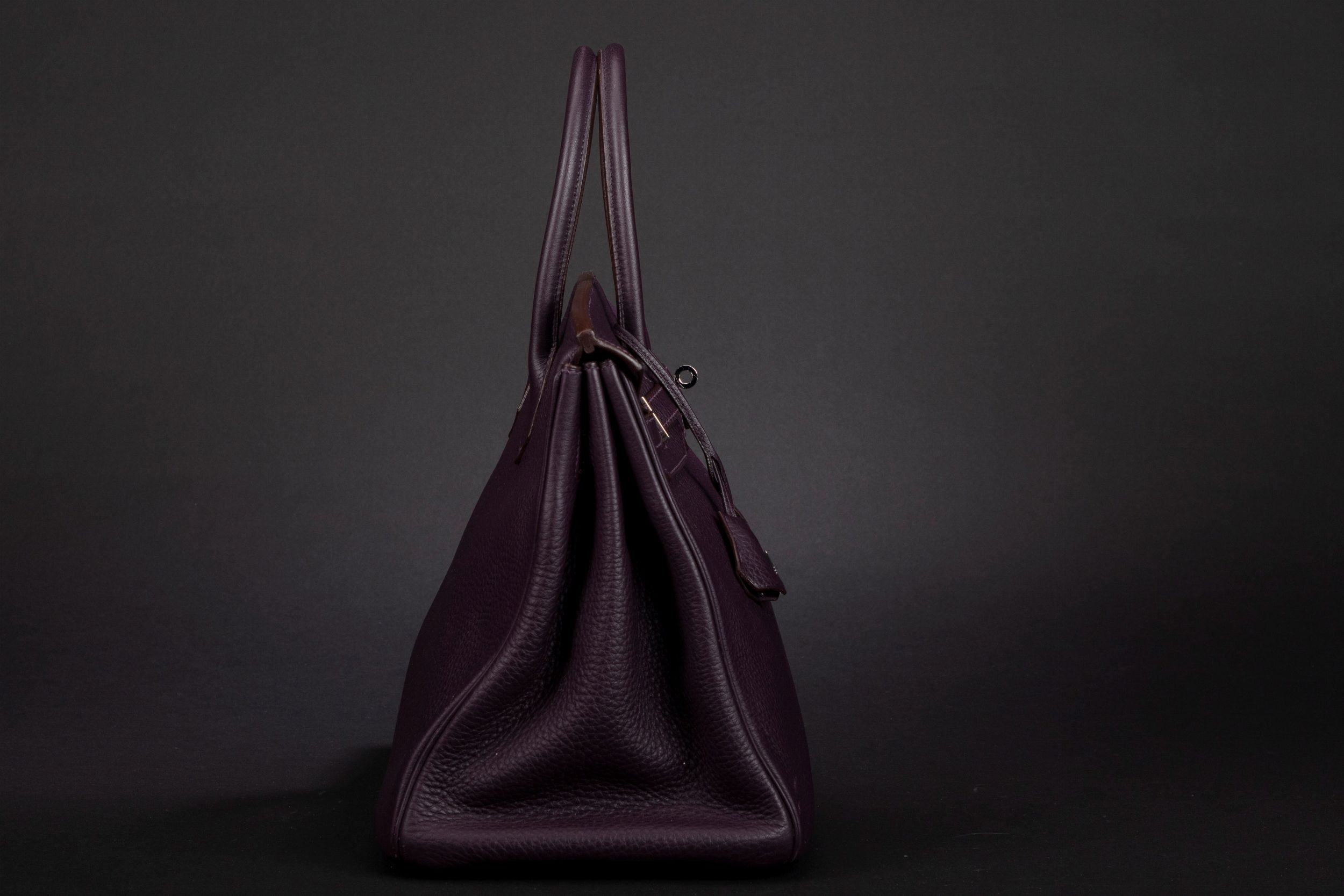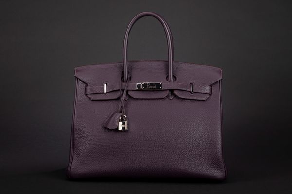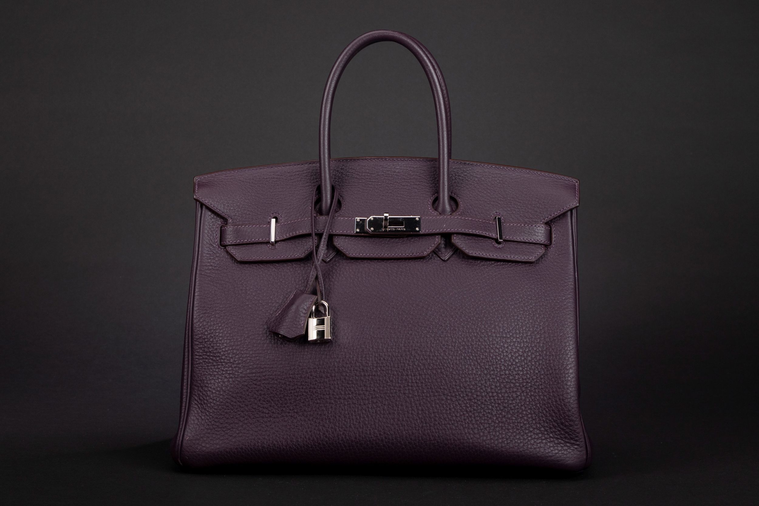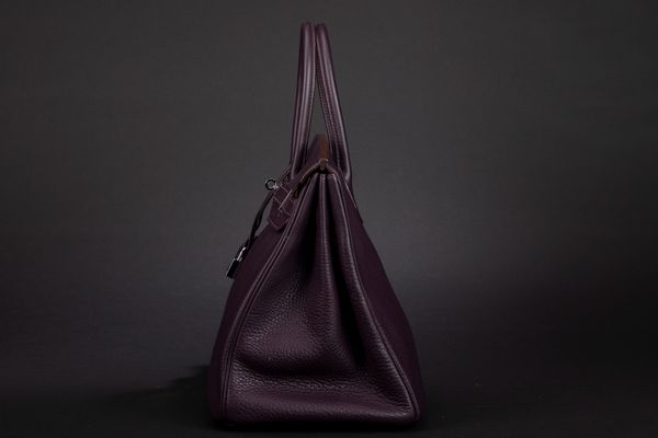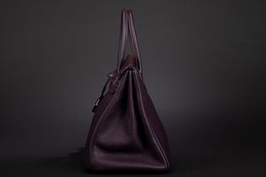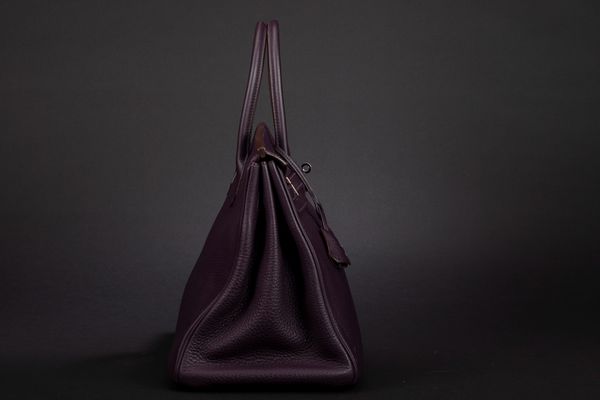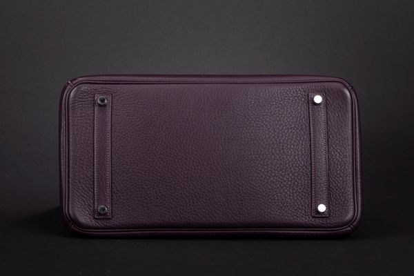 2007 in pelle taurillon clémence color melanzana, dettagli in palladio (lievi difetti)